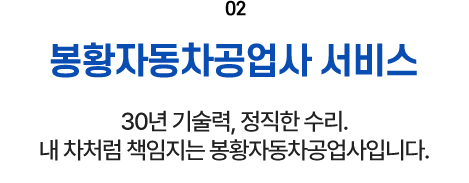 단순한 오일 교환부터 엔진·미션 등 중정비, 사고차 복원까지 차량 관리에 필요한 모든 작업을 한 곳에서 해결할 수 있습니다.